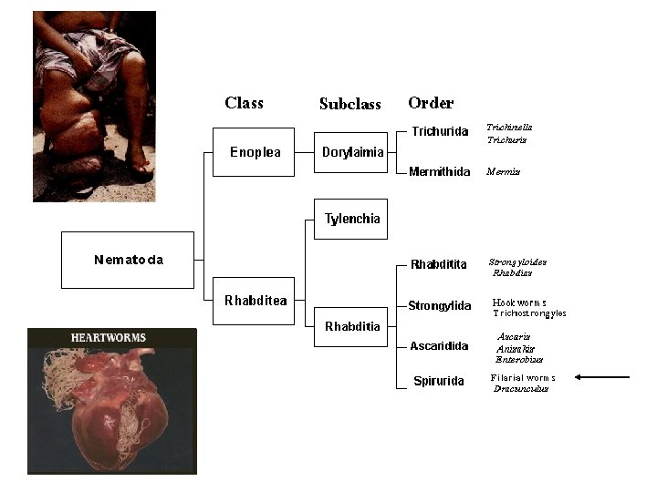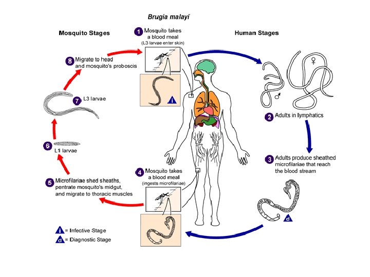 Filaroidea: Filarial Nematodes Tissue dwelling parasites All species use arthropods as intermediate hosts Many affect domestic animals or humans: Lymphatic filariasis: Brugia malayi, Wuchereria bancrofti River Blindness: Onchocerca volvulus