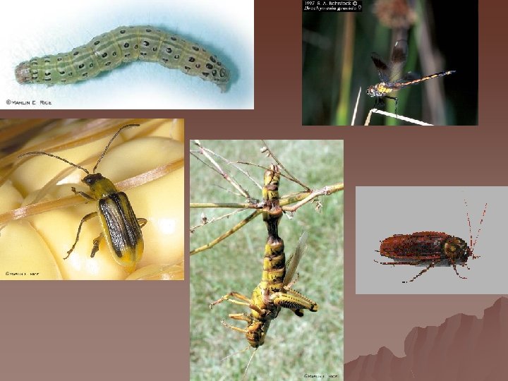 Classe Insecta u u u u COPRO DIVIDIDO EM TRÊS PARTES: CABEÇA, TÓRAX E ABDOME RESPIRAÇÃO TRAQUEAL REPRODUÇÃO SEXUADA E FECUNDAÇÃO INTERNA TIPOS DE DESENVOLVIMENTO: AMETÁBOLOS HEMIMETÁBOLOS HOLOMETÁBOLOS