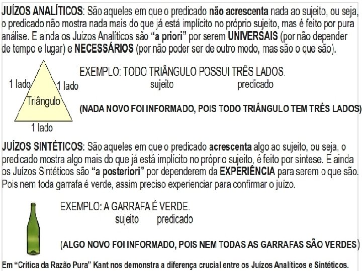 Conhecimento a priori e a posteriori. • Como se da o conhecimento para Kant? • R: Com a união de duas ferramentas, a razão e a experiência. • Nasce daí o criticismo kantiano. • Após conhecermos algo fazemos juízos. • Juízos: são conclusões a respeito das coisas.