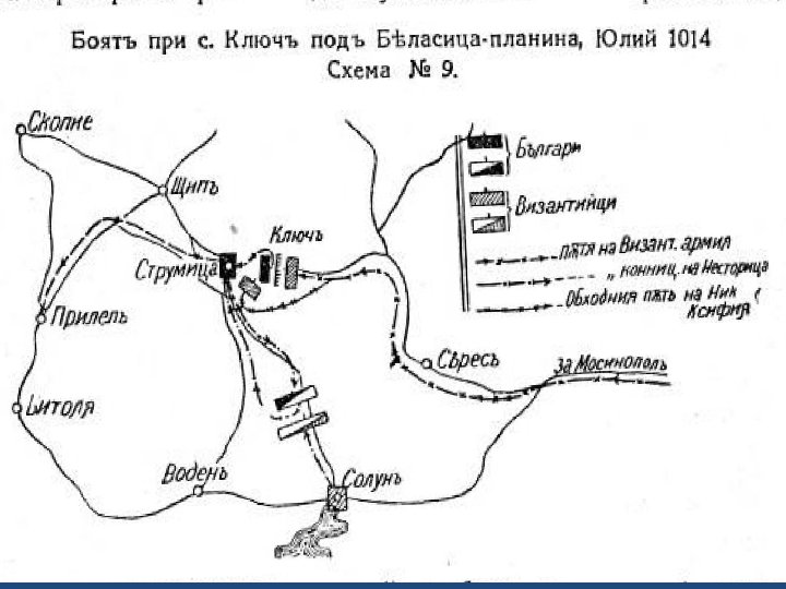 • Vizantija nije smjela da dozvoli nestabilnost na sjevernim granicama. Konačni udarac desio se na planini Belasici, u blizini Strumice, 1014. godine u kojoj je vizantijska vojska, pod komandom cara Vasilija II do nogu potukla Samuilove trupe, nakon čega je uslijedila svirepa odmazda nad zarobljenicima. Nekoliko hiljada zarobljenih Slovena po carevoj naredbi je oslepljeno, dok je svakom stotom ostavljeno po jedno oko da bi mogao da vodi ostale ka centru države, gradu Prilepu. • Zbog ove surovosti car Vasilije II je dobio nadimak Bugaroubica.