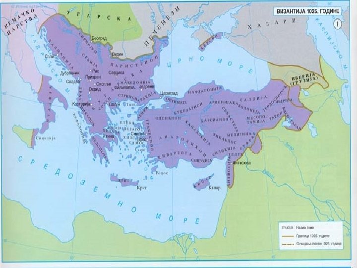 • Postavši dio Vizantije, teritorija Samuilove carevine podijeljena je u teme. • U centralnom dijelu Vasilije je obrazovao tematsku jedinicu Bugarsku. • Između balkanskih planina i Dunava formirao je temu Paristrion. • Da bi proširio ove uspjehe car se spremao na ekspediciju protiv Arapa na Siciliji, ali je 15. 12. 1025. g. umro, ostavivši imperiju od jermenskih planina do Jadrana i od Eufrata do Dunava.