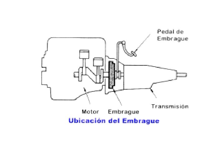 • El Embrague. • Esquema y mecanismo de operación. • El embrague transmite la potencia del motor a la transmisión manual mediante su acoplamiento o desacoplamiento. También, hace la salida más suave, hace posible detener el vehículo sin parar el motor y facilita las operaciones del mismo.