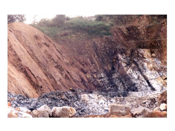 Fedlspar alteration in the pluton • K-feldspar to sericite: 3 KAl. Si 3 O 8 + 2 H+ > KAl 3 Si 3 O 10(OH)2 + 6 Si. O 2 + 2 K+ • Sericite to kaolin: 2 KAl 3 Si 3 O 10(OH)2 + 2 H+ + 3 H 20 > 3 Al 2 Si 2 O 5(OH)4 + 2 K+ Requires acidic fluids!