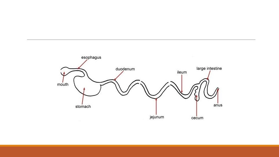 Digestive System- Monogastric WHAT IS THE ROUTE FOOD WILL TAKE THROUGH THIS SYSTEM? 1. Mouth 8. Cecum 2. Esophagus 9. Large Intestine 3. Stomach 10. Rectum 4. Small Intestine 11. Anus 5. Duodenum 6. Jejunum 7. Ileum