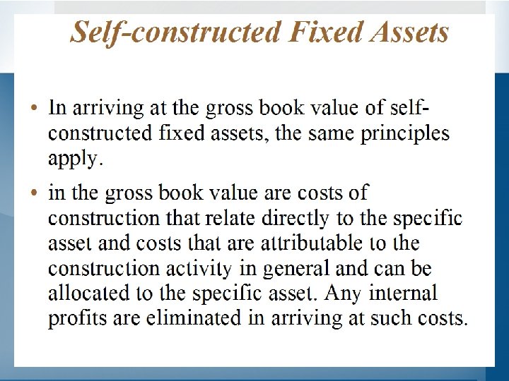 Non-monetary Consideration • When a fixed asset is acquired in exchange for another asset, its cost is usually determined by reference to the fair market value of the consideration given. • When a fixed asset is acquired in exchange for shares or other securities in the enterprise, it is usually recorded at its fair market value, or the fair market value of the securities issued, whichever is more clearly evident.