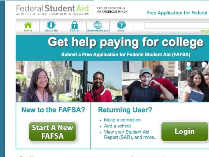 What happens next? �Confirmation with Expected Family Contribution (EFC) �Student Aid Report by mail or email �Colleges receive information and create award letters �Verification requests? Respond promptly. �Example Cost of Attendance $20, 000 - EFC $5, 000 Financial Need $15, 000