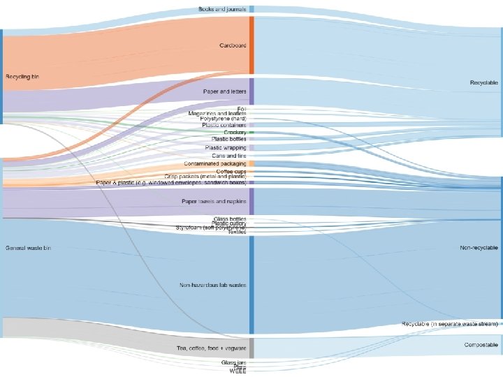 Other ideas for waste reduction This year through the Green Impact initiative, many departments have taken action to eliminate waste: • 25 departments had committed to providing reusable cups and/or eliminating disposable drinking cups altogether. Disposable cup elimination in the Department of Surgery • 27 departments provided facilities for re-using envelopes for internal use. Envelope recycling at Meet Cambridge • 24 departments ensured that duplex printing was the default option. • 26 departments shifted to providing tap water rather than bottled water for meetings. • 9 departments shifted to recycled or sustainably-sourced paper. • 6 departments took proactive steps to reduce hand-outs taken to meetings or used in lectures. Tap water replacing bottled water in Zoology (Recycled) paper pyramid at Greenwich House 22
