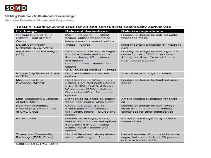 Financial market actors (2) n Hegde funds n Pension funds e. g. PPGM (NL) part of EUR 9 bn ‘invested’ in ‘commodities’ n Institutional investors n Individual investors n High frequency traders n Agribusinesses speculating & hedging