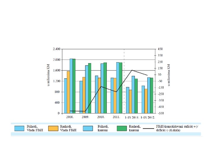 JAVNI RASHODI Bi. H Javne finansije U pogledu javnih finansija, globalno govoreći, i u 2012. godini nastavljen je trend ograničavanja potrošnje, a s ciljem smanjivanja fiskalnog deficita. Prema fiskalnim planovima, usvojenim kroz aranžman s MMF-om, planirano je da fiskalni deficit bude na otprilike istom nivou kao u 2011. (2, 5% BDP).