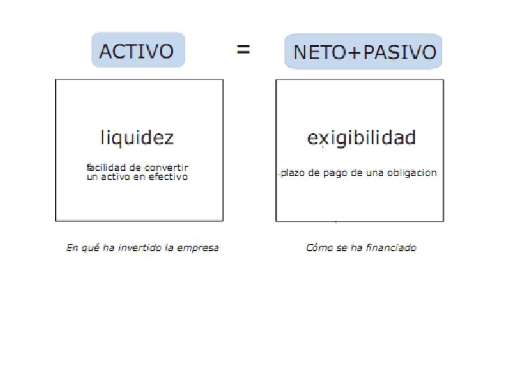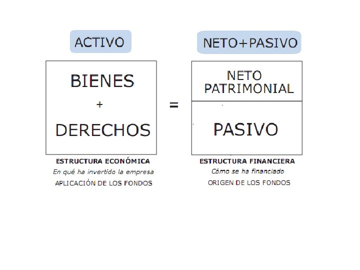Neto = Activo- Pasivo Activo = Pasivo + Neto