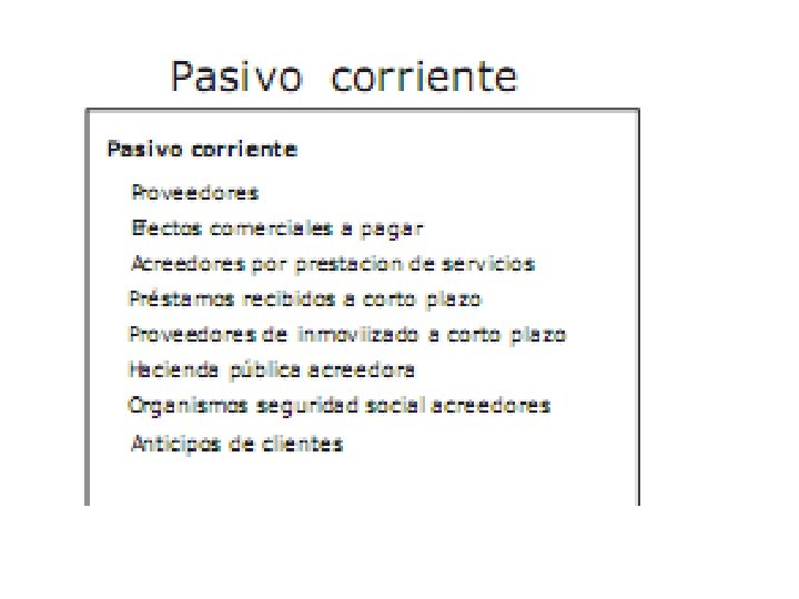 2. Pasivo no corriente • Exigible a largo plazo. • Son deudas con vencimiento a más de un año (préstamos bancarios…).