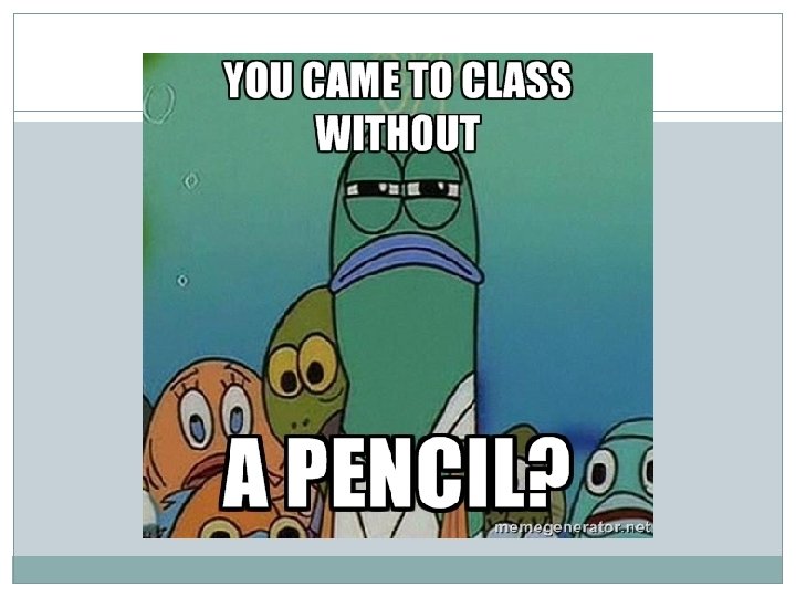 Be Prepared! Need to borrow a pencil every once in a while? You may take ONE off the magnetic board near the front of the room… ALL 4 MUST be returned to the board BEFORE anyone will be dismissed from class!! My “Materials Manager” will help ensure pencils are returned daily
