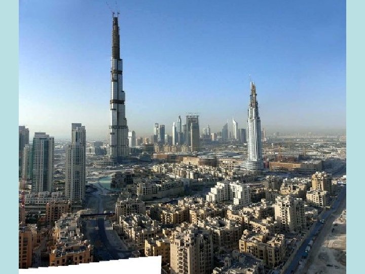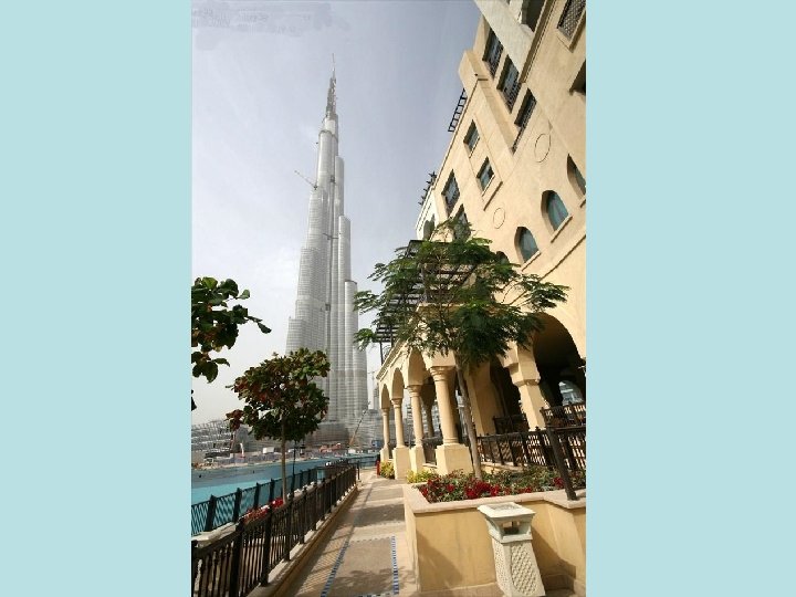 Finishing touches are made on the worlds highest Slides: 32 Download presentation Finishing touches are made on the world’s highest building. 818 m 509 m 381 m 318 m Burj Dubai Taipei 101 Empire State Eiffel tower The construction started in 2004. february 2006 In May 2007 it set a record in vertical concrete pumping of 500 meters. In september 2007 was already the worlds highest building. (555 m) September 2008, it is the highest building ever built by human hand. It’s height: 700 m. With its 160 floors, it broke a previous record. . . The previous world record was 110 story's. Its work in progress… It set the record in occurred expenses too: 4, 2 billion Dollars. For its construction new technological solutions have been developed. The crane operators had no acrophobia. At the upper level the Earth's curvature and rotation is detectable. The existing skyscrapers are dwarfed by the tower. A photo from last year… A view from the tower… in fair weather… …and at dust storm. The tower from afar… The location of the tower in Dubai. The surroundings There is an artificial lake and a fountain in front of the tower. This is the Worlds highest musical fountain. The curtain of water is 150 m high and 250 m long The fountain’s jets are computer controlled. The cost of construction of the fountain was 220 million dollars. The jets are illuminated by 6600 electric bulbs and 50 colored light projectors. The construction of the Burj Dubai will be completed, but the opening could be deferred for years due to economic crisis, and the decline of tourism.