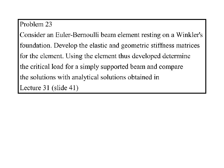 Problem 21. Analyse the beam column problem shwon below using FEM and compare FE solutions with the exact solutions 24