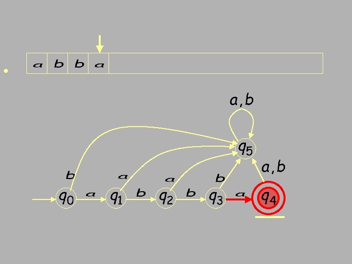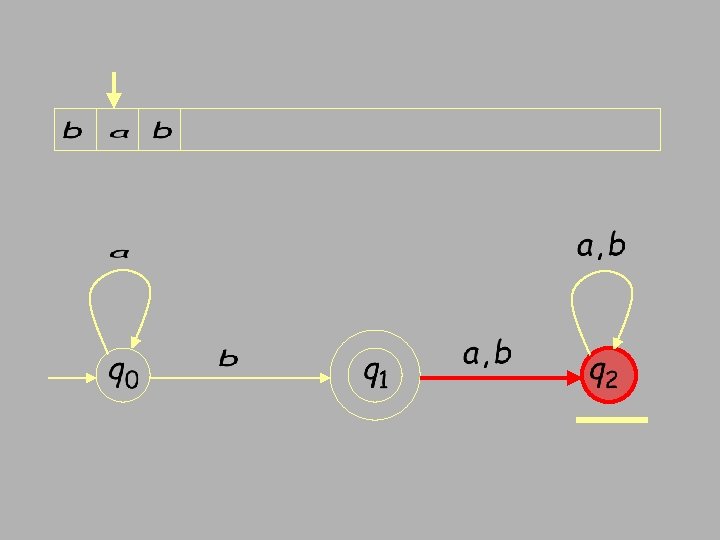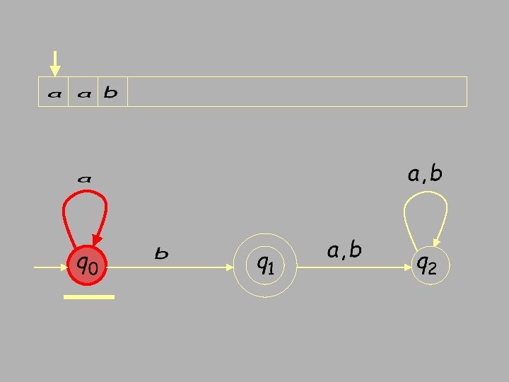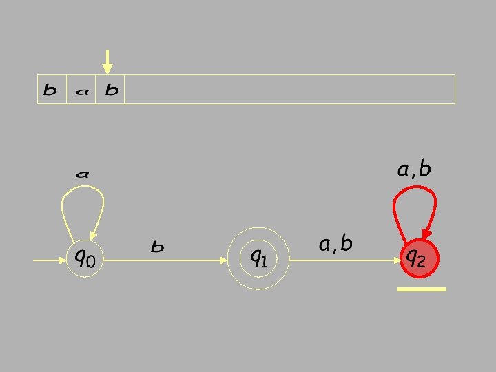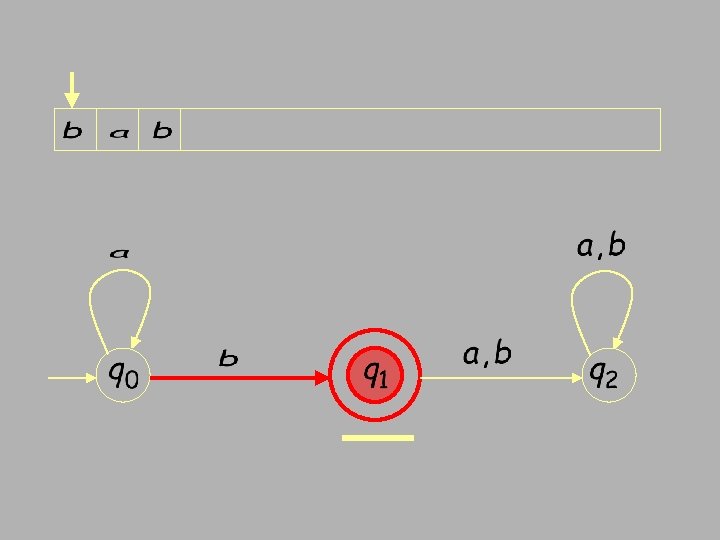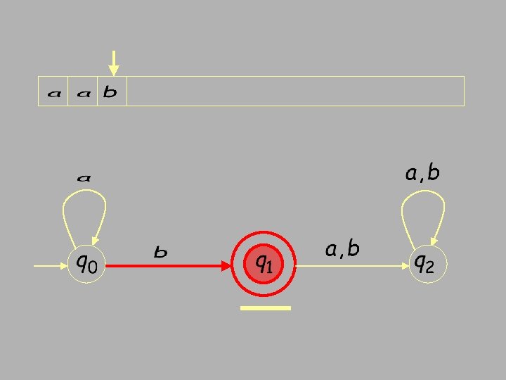 Finite Automata • Transition s 1 a s 2 • Is read ‘In state s 1 on input “a” go to state s 2’ • If end of input – If in accepting state => accept – Otherwise => reject • If no transition possible (got stuck) => reject • FSA = Finite State Automata