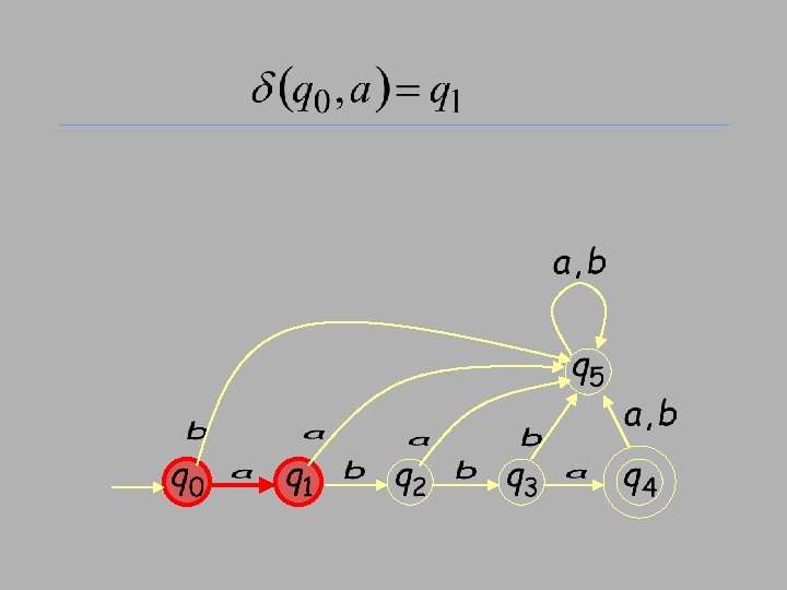 Finite State Automata • A finite state automation M=(S, Σ, δ, s 0, F) consists of • a finite set S of states, • a finite input alphabet Σ, • a state transition function δ: S x Σ S, • an initial state s 0, • F subset of S that represent the final states.