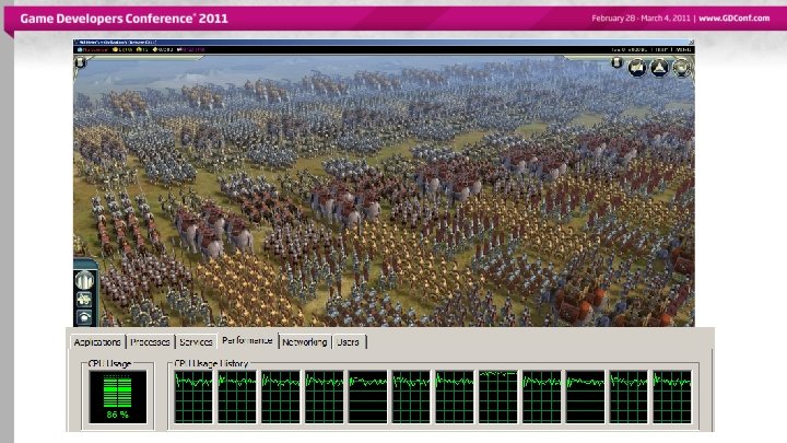 Threaded D 3 D 11 submission • Top issues: – Generally High driver overhead for batch submission – But: D 3 D 11 has multithreaded submission – Command Streams not necessarily map 1: 1 to Command. Lists – Civilization V can change how it submits via settings the config files