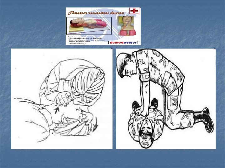 2. Bila sulit bernapas/bahkan tidak bernapas segera cari bantuan/telepon ambulance. lakukan pemeriksaan jalan napas, apakah terdapat sumbatan atau tidak(pangkal lidah, muntahan, kotoran dalam mulut. ) 3. Tindakan pertolongan pertama yang dilakukan adalah membebaskan jalan napas dengan menarik lidah ke luar, mengeluarkan benda asing dalam rongga mulut (gunakan kedua jari)