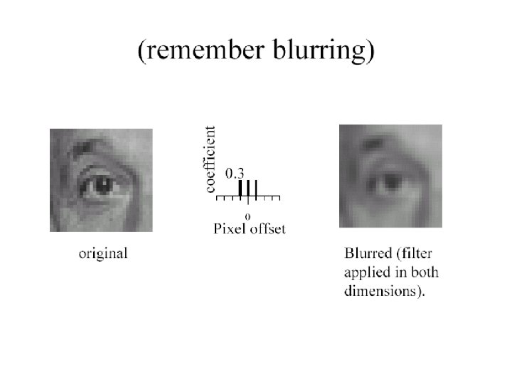 Recap of Friday Sampling and Reconstruction Aliasing and how to prevent it (blur / low pass filters) Linear filtering and convolution