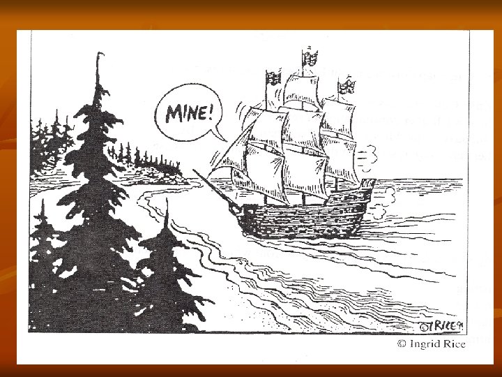 Terra Nullius What is it? -policy for claiming land What does it mean? -“land belonging to no one” or “empty land” -take what looks empty BC 1 st Nations Context: -sailors see “empty land” and claim sovereignty (Sovereignty: supreme power or authority over a land) King George III of England – instructions for sailors: [Terra Nullius] “if you find the countries so discovered are uninhabited you are to take possession of them for His Majesty by setting up proper marks and inscriptions as first discoverers and possessors”