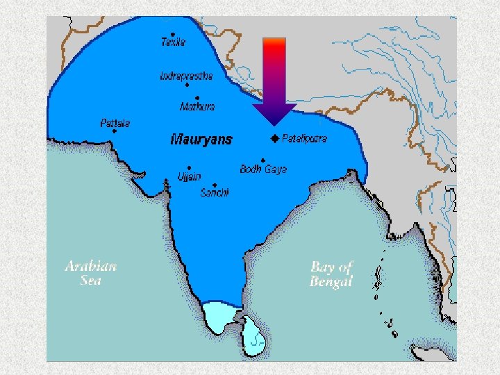 Mauryan Empire • Chandragupta Maurya conquered the remains of Alexander the Great’s kingdom and controlled most of present-day India • Reigned from 321 – 298 BCE • Forced people to pay high taxes, sometimes up to 50% of their income