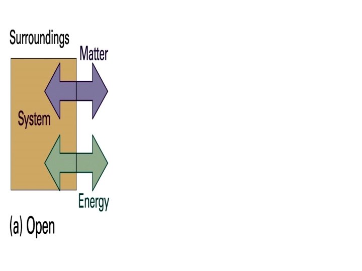 System, Surroundings, Universe • System- Part of the world of interest • Surroundings- Region outside the system • Open system- Allows matter and energy to pass • Closed system- Cannot allow matter to pass • Isolated system- Cannot allow matter or energy to pass
