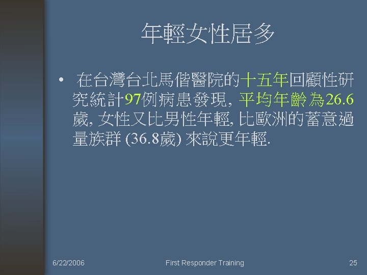 First responder training MMH 15 F Emergency Department Yu-Jang Su, M. D 95/6/22 13: 00— 13: 50 6/22/2006 First Responder Training 1