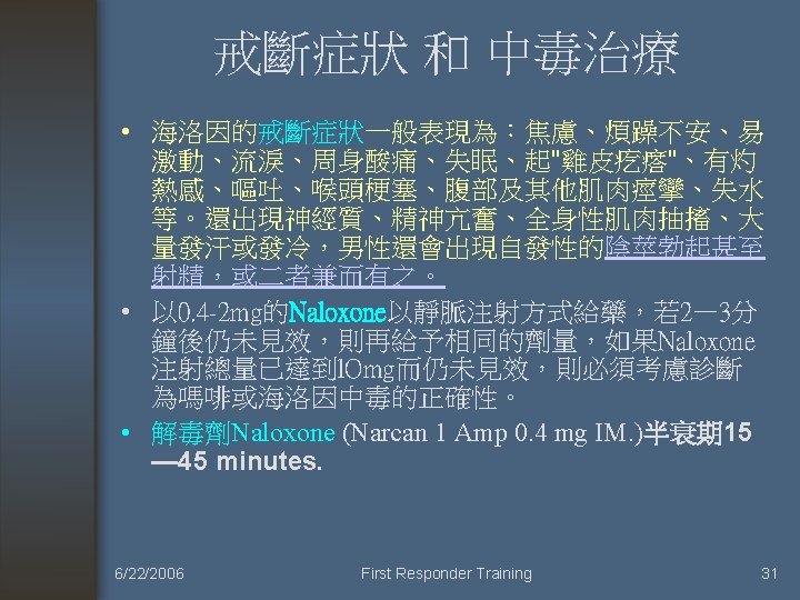 甲醇中毒 6/22/2006 First Responder Training 32
