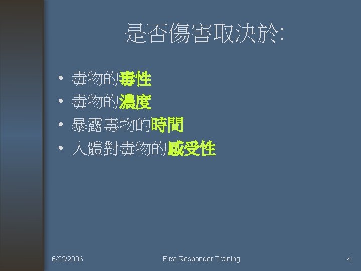中毒 Intoxication. 6/22/2006 First Responder Training 3