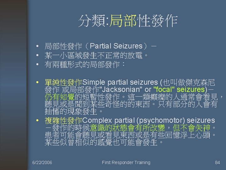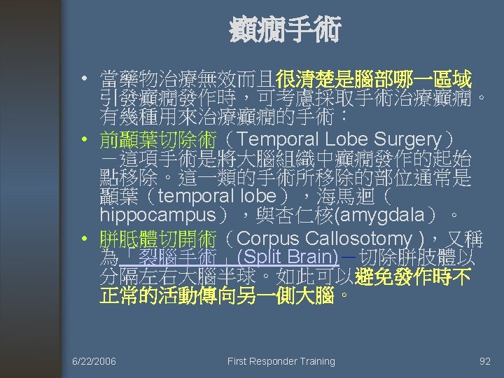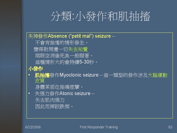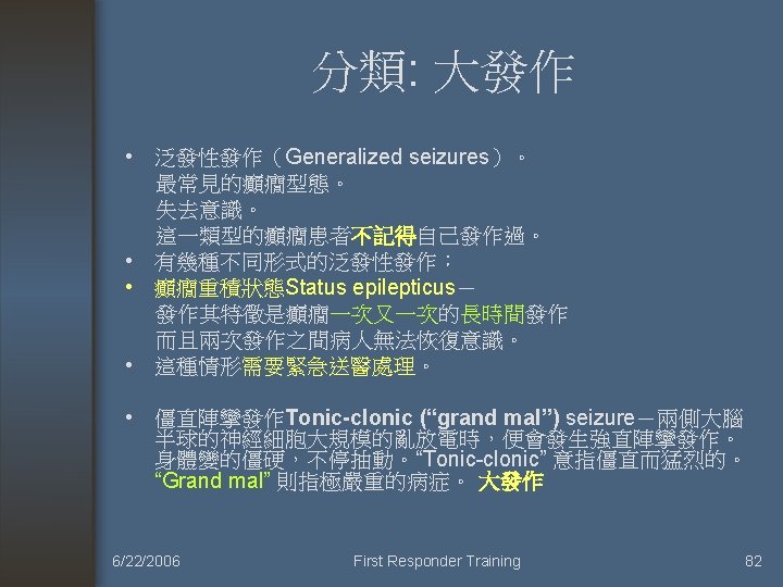癲癇 6/22/2006 First Responder Training 81