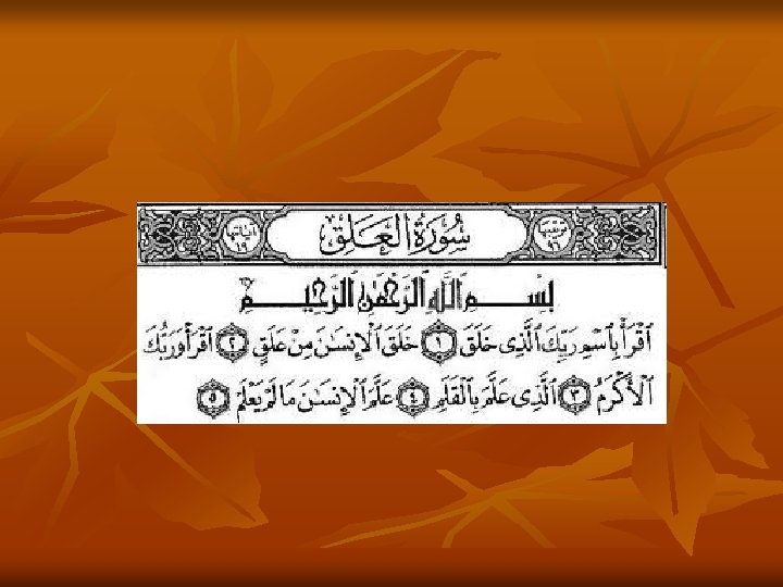 Authorship of The Qur’an n The first person who recited the Qur’an was prophet Muhammad pbuh, in 7 th century C. E. If someone authors a book, he/she will proudly claim the authorship, but the Prophet did not claim it, he said it is Allah’s words Internal and external evidence has proven that there is no author but Allah swt (God): 96/1, 1/1, repeated 114 times, 57/16, 56/77 -80, 25/1, 4/105, 2/185, 15/9, 16/44, 26/192 -194