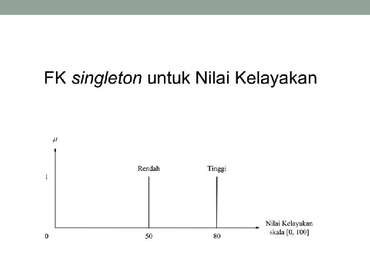 9 • Defuzzyfikasi pada metode Sugeno lebih sederhana, karena hanya menghitung center of single-ton: • yang dalam hal ini, adalah nilai singleton.