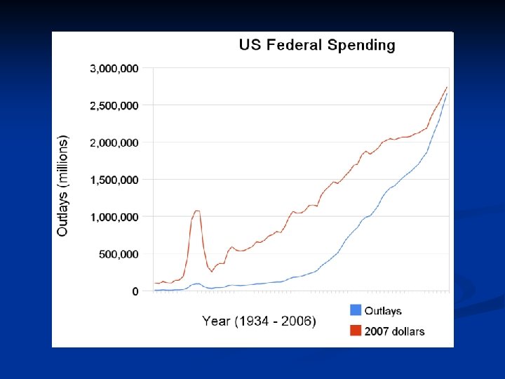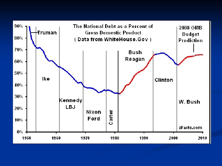Economic History n n The Great Depression n Franklin D. Roosevelt increased government spending on a number of programs with the goal of ending the Depression. World War II n Government spending increased dramatically as the country geared up for war. This spending helped lift the country out of the Depression. The 1960 s n John F. Kennedy’s administration proposed cuts to the personal and business income taxes in an effort to stimulate demand bring the economy closer to full productive capacity. Government spending also increased because of the Vietnam war. Supply-Side Policies in the 1980 s n In 1981, Ronald Reagan’s administration helped pass a bill to reduce taxes by 25 percent over three