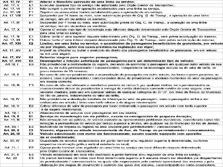 TOTAL DE MULTAS VIRTUAIS _______ _ Por Tipo 120 100 97 80 67 60 40 35 25 4 4 4 3 3 3 2 2 2 17, XIV 23, V 24, XIII 25, XV 20, II 24, V 24, XII 24, XV 25, III 24, XIV 23, II 23, VII 23, IX 17, II 0 Outros 5 23, X 14 20, IV 14 17, XVI 15 24, VI 20 ____________________________________________________ Total de multas virtuais aplicadas: 311 Multas virtuais aplicadas por tipo: 35 Total de pontos: 1. 491, 79 Outros artigos: 22; 17, VIII; 17, XII; 18, V; 23, VI; 23, XI; 24, VIII; 24, XVII; 25, IX; 25, VII; 26, III e 26, XIV, todos do Código Disciplinar