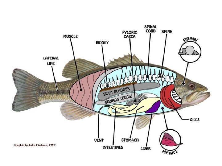 • All have nerve cords • All have two chamber hearts. • All live in the water, are aquatic. Except mudskippers! And more mudskippers. • All are cold blooded Exterior view Click on heart to see HUMAN heart circulation Interior View