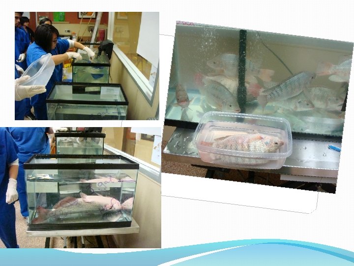 Causes of Stress �water quality (O 2, ammonia, nitrite, p. H, other contaminants) �transportation �netting & handling �temperature �salinity �water hardness �poor nutrition �inappropriate housing conditions �noise �lighting �vibrations �stocking density