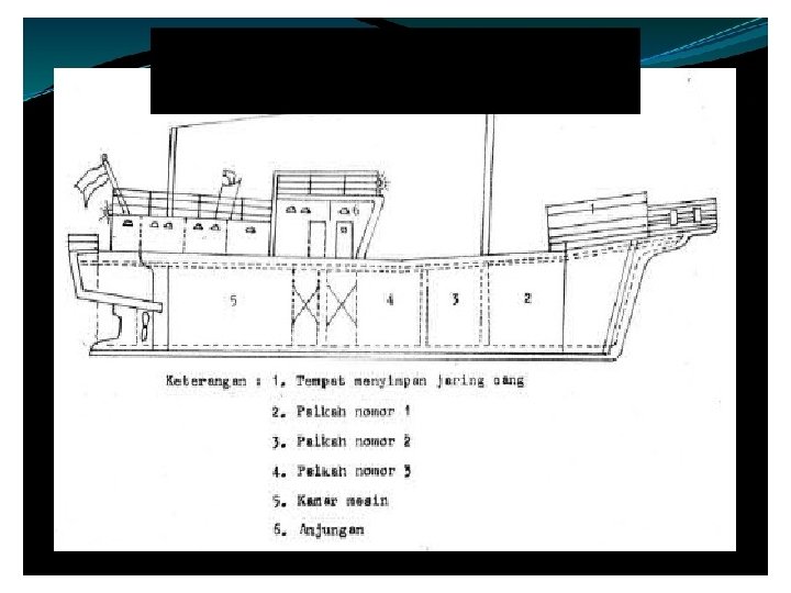 Types of Pole and Line Fishing Vessel 1. Small vessel: 7 -15 GT; distance <30 mil; without catch preservation 2. Medium vessel: 15 -50 GT; distance 30 – 50 mil; duration: <5 days of fishing 3. Big vessel: >100 Gt; duration : >40 days of fishing
