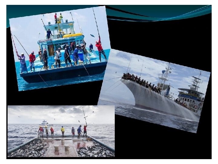 Pole and Line Fishing Vessel • Operated from the shore (sport fishing) or from vessel (sport/commercial fishery) • Length: 15 – 40 m • Special arrangement: many poles in side boat + area for keeping bait alive + water sprinker