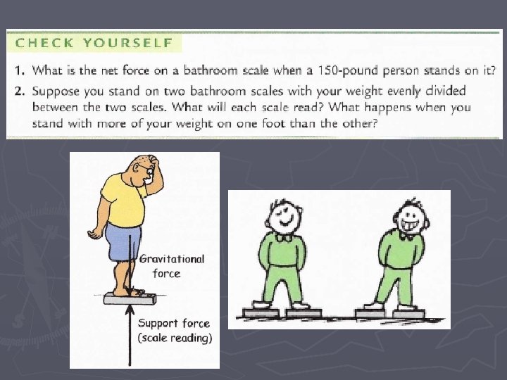 Inersia, Massa dan Berat Inersia adalah kecenderungan sebuah benda untuk mempertahankan keadaan geraknya semula (sifat) ► Massa adalah ukuran dari inersia, yaitu ukuran kemalasan suatu benda untuk mengubah keadaan geraknya karena pengaruh gaya (satuan SI: kg) ► Besarnya gaya gravitasi yang bekerja pada benda bermassa m di dekat permukaan bumi dinamakan berat dari benda (satuan SI: Newton) ► Berat benda bergantung pada lokasi ►