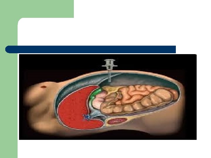 Instilación CO 2 l l l Flujo inicial de 1 Lt/min, lento. Permite detectar embolia gaseosa y percutir abdomen en busca timpanismo y borramiento hepático Distensión simétrica- porque cuando hay asimetría sospecha punción inadvertida asa intestinal Palpar pared abdominal- buscar crepitación, colocación superficial de aguja