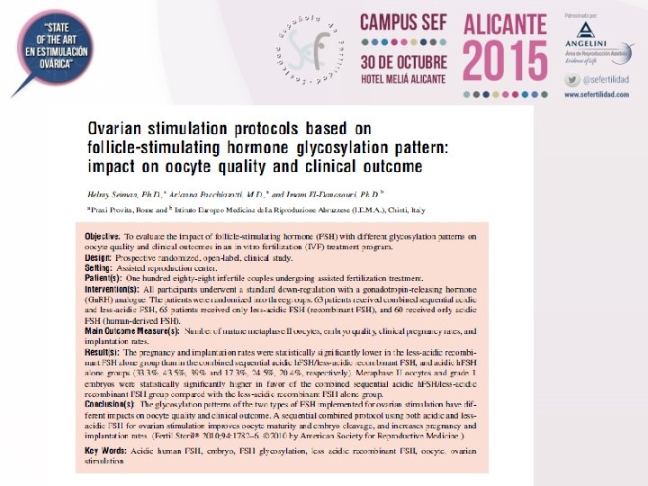 Conclusiones • El uso de protocolos secuenciales con FSHu y FSHr pueden ofrecer una mejora en los protocolos de estimulación ovárica comparando con protocolos con FSH sola • Corresponde al clínico la búsqueda de su protocolo ideal para cada paciente tratada