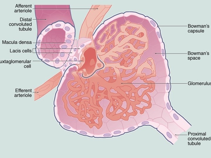 l Cápsula de Bowman l Polo vascular: entra y sale la sangre a través de arteriolas l Espacio de Bowman o urinario: espacio lleno de liquido en el interior de la cápsula. Sitio hacia el que se filtra el líquido l Opuesto a polo vascular: l Abertura que conduce a primera porción del túbulo l Barrera de Filtración: l X donde todas las sustancias filtradas deben pasar