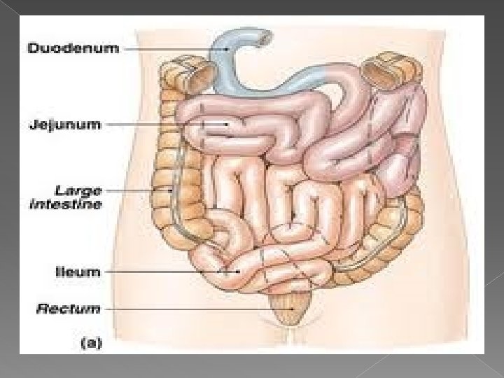 Pergerakan peristaltik � Pergerakan profulsif atau gerakan peristaltic mendorong makanan kearah usus besar (colon). yang � Gerakan peristaltic pada usus halus mendorong makanan menuju kearah kolon dengan kecepatan 0, 5 sampai 2 cm/detik, dimana pada bagian proksimal lebih cepat dibandingkan pada bagian distal. Gerakan peristaltic ini sangat lemah dan biasanya menghilang setelah berlangsungsekitar 3 sampai 5 cm, dan jarang lebih dari 10 cm. rata-rata pergerakan makanan pada usus halus hanya 1 cm/menit. Ini berarti pada keadaan normal , makanan dari pylorus akan tiba di ileocaecal junction dalam waktu 3 -5 jam.