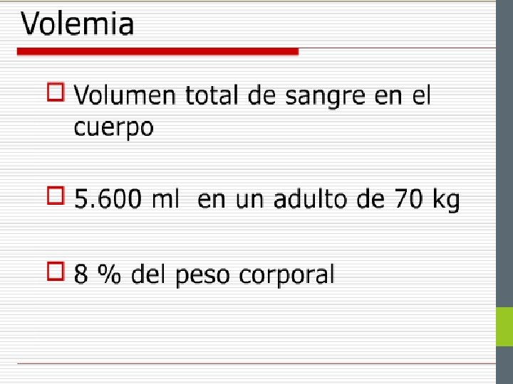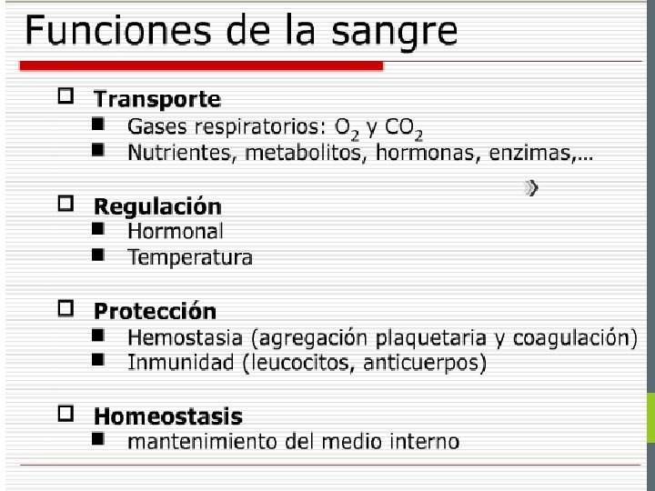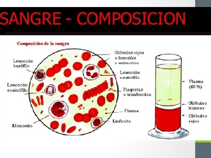 Características y propiedades de la sangre • Más espesa que el agua (su viscosidad es mayor) • Su temperatura es superior a la de la piel ya que es de 38 ºC. • Su p. H es neutro, entre 7’ 35 y 7’ 45.