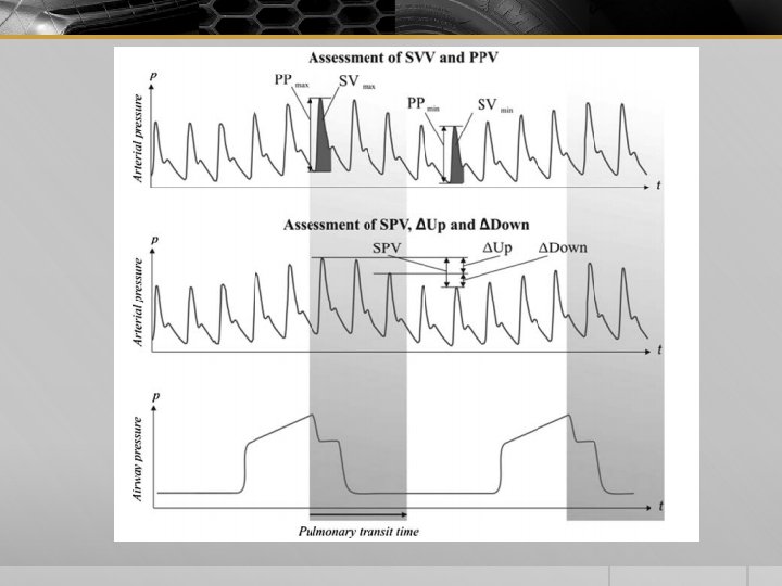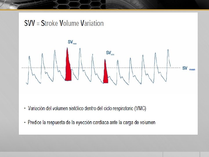 MEDICIONES DINAMICAS § VVS VARIABILIDAD VOLUMEN SISTOLICO § VPP VARIABILIDAD PRESION PULSO § VPS VARIABILIDAD PRESION DIASTOLICA § CAMBIOS EN EL FLUJO SANGUINEO AORTICO REFLEJAR CAMBIOS EN EL VS-VI POR LAS INTERACCIONES CORAZON PULMON DE LA VENTILACION MECANICA