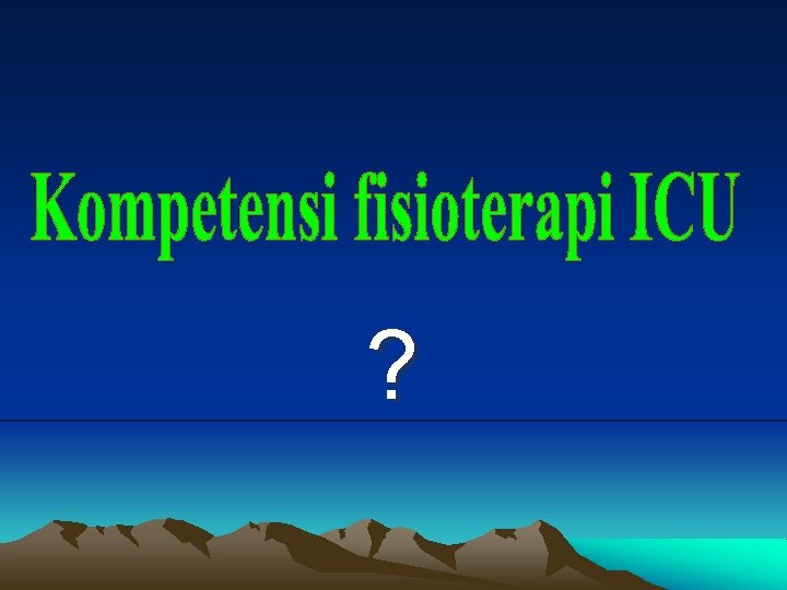 References 1. William Mosenthal dr. A simple idea from a special surgeon. Dartmouth Medicine. Retrieved on 2007 2. Kahn JM, Goss CH, Heagerty PJ, Kramer AA, O'Brien CR, Rubenfeld GD. (2006). “ 3. Hospital volume and the outcomes of mechanical ventilation. ". New England Journal of Medicine 355 (1): 41 -50. Retrieved on 2006 -08 -02. 4. Retrieved from "http: //en. wikipedia. org/wiki/Intensive_care_unit" 5. Categories: Intensive care medicine | Hospital departments 6. Enrico Clini a , Nicolino Ambrosino b, Early physiotherapy in the respiratory intensive. Fondazione Villa Pineta, Pavullo, Italy 2004. 7. Balachandran. So. Shivbalan*S. Thangavelu Chest Physiotherapy in Pediatric Practice. INDIAN PEDIATRICS jurnal 559 VOLUME 42 JUNE 17, 2005 8. …………. . A to z in ICU, Intensive Care at Nepean Hospital, Nepean ICU 2004. s. sumarno Pelatihan fisioterapi ICU Bapelkes jakarta. 60