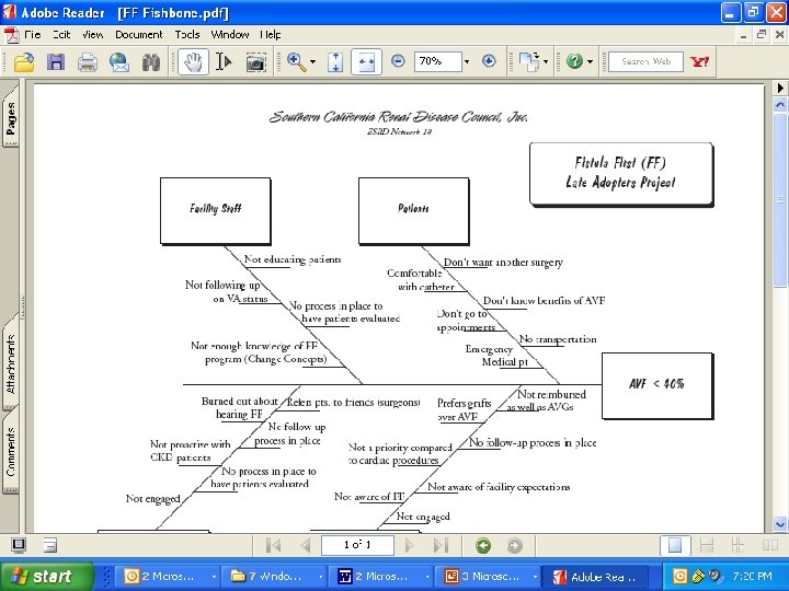 Tools & Best Practices: Fistula First Change Concepts 1. 2. 3. 4. 5. Routine CQI Review of vascular access Timely referral to nephrologist Early referral to surgeon for “AVF Only” Surgeon Selection Full range of appropriate surgical approaches 6. 7. 8. 9. 10. 11. Secondary AVFs in AFG patients AVF evaluation/placement in catheter pts Cannulation training Monitoring and maintenance Continuing Education Outcomes feedback 6