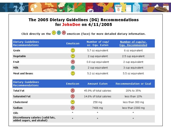 My. Pyramid Tracker A tool for those desiring a more advanced analysis of their food intake and physical activity
