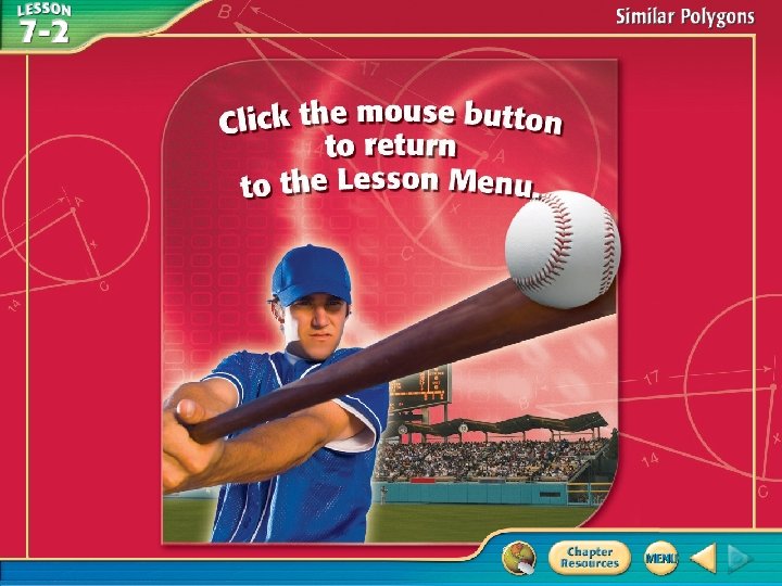 You used proportions to solve problems. (Lesson 7– 1) • Use proportions to identify similar polygons. • Solve problems using the properties of similar polygons.