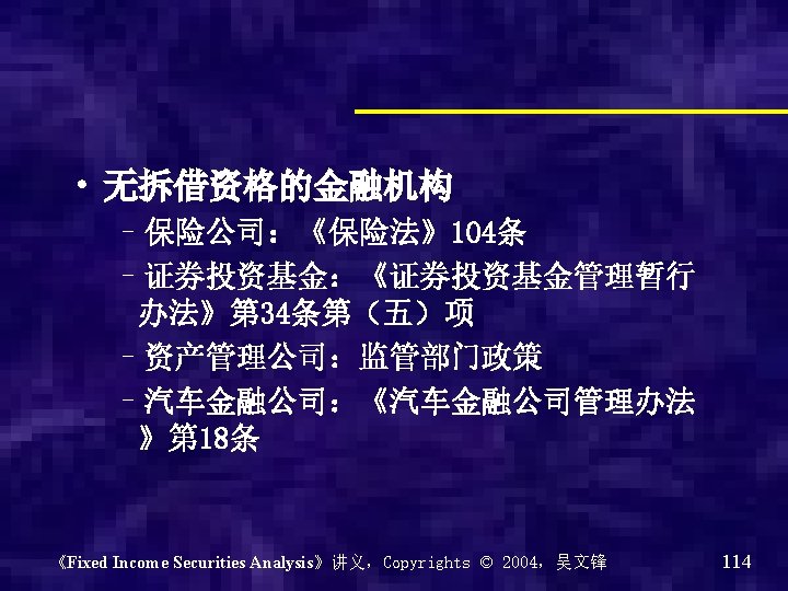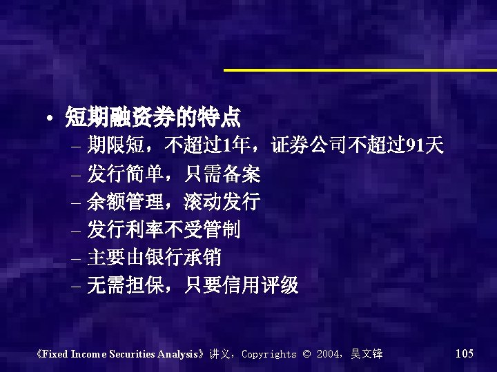 《Fixed Income Securities Analysis》讲义,Copyrights © 2004,吴文锋 104